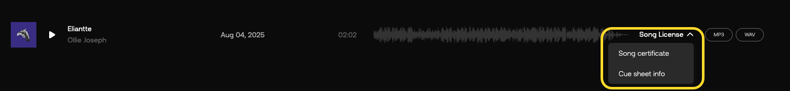 Note: Assets licenses are available while the subscription is active. Once a subscription expires, asset licenses and cue sheet information are no longer downloadable.