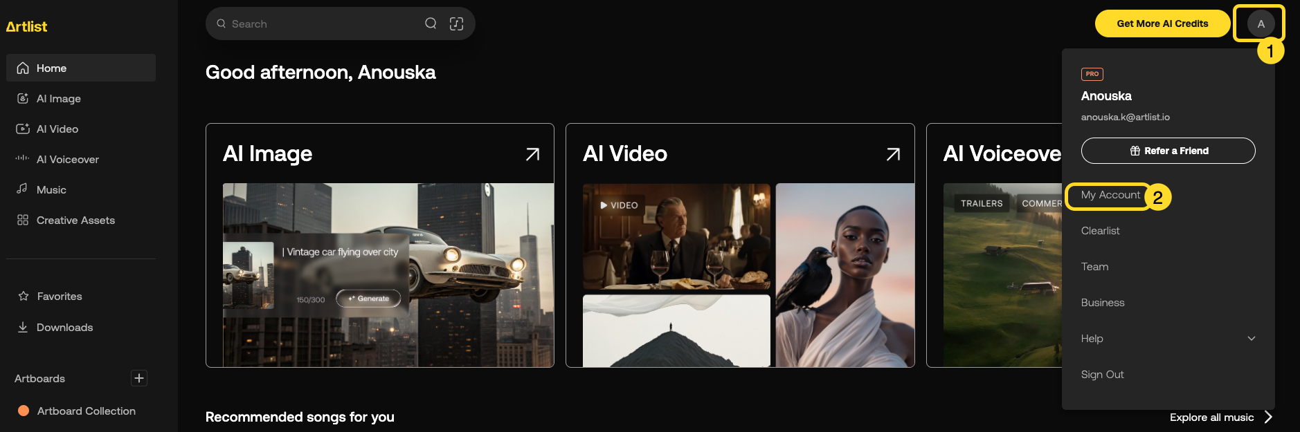 Keeping your Artlist account information up-to-date ensures you receive accurate billing and renewals, accurate invoices, and uninterrupted access to Artlist assets. This article explains how to sign in, reset your password, update account information, manage your subscription and download your license.