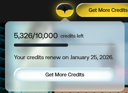 Each time you generate AI content, the corresponding credit cost will be automatically deducted from your monthly credit pool. The number of credits required to generate varies by model and output settings.